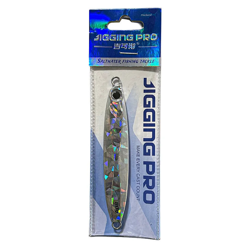 ג'יג מתכת מקצועי מבית Jigging Pro במשקל 80 גרם בגימור כסוף מנסרתי מחזיר אור. הפיתיון עוצב עבור דייגי סירות וקיאקים המחפשים את הדימוי המושלם לדג חי או פיתיון טבעי במים. בזכות מבנה אווירודינמי ותנועה אגרסיבית, הוא נחשב לקטלני במיוחד עבור פלמידות, אינטיאסים, לוקוסים לבנים וטוניות במים עמוקים.