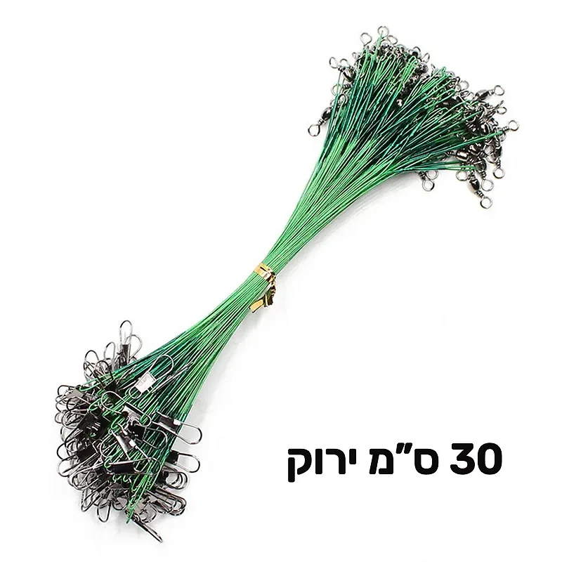 מפרט קצר - חוטי פלדה לדייג בצבע ירוק באורך 30 ס"מ