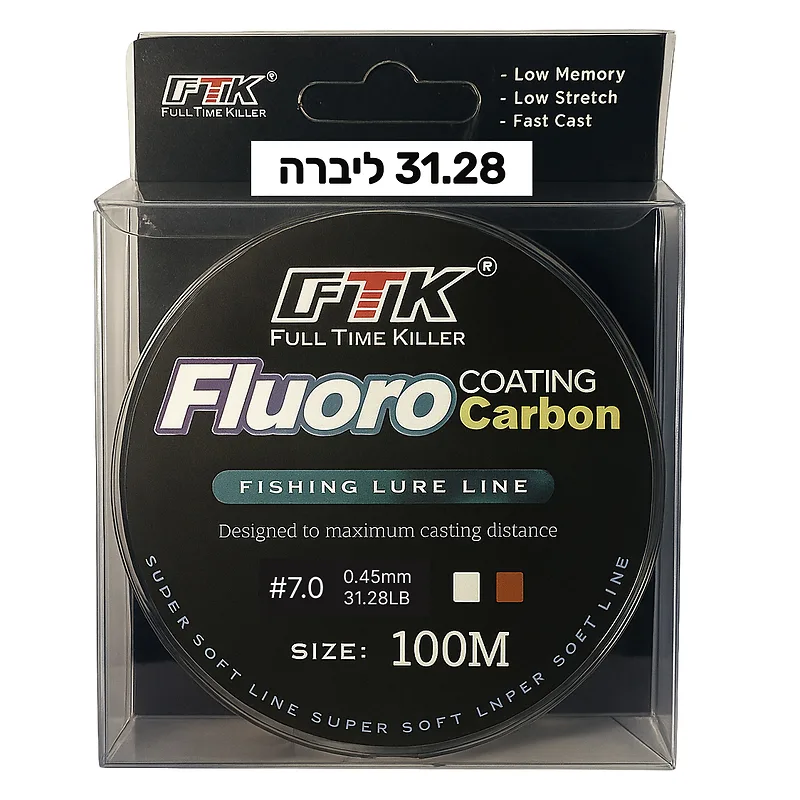 חוט הפלורוקרבון מבית FTK הוא כלי עזר חיוני לדייגים השואפים לרמת דיוק גבוהה. הפלורוקרבון מאופיין בתכונות פיזיקליות ייחודיות המעניקות לו יתרון כפול: שקיפות אופטית גבוהה במיוחד הגורמת לו להיות כמעט בלתי נראה במים, ועמידות מכנית גבוהה בפני חיכוך ושחיקה מול עצמים קשיחים ושיני דגים.
