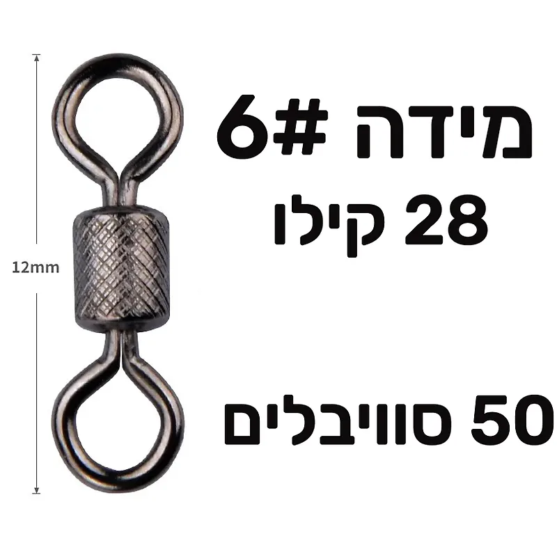 סוויבלים מקצועיים מפלדת אל-חלד 302 המעניקים חוזק מקסימלי ועמידות מוחלטת בפני חלודה. מנגנון הסיבוב החלק מונע פלונטרים בחוט ומבטיח שהדג לא יברח ברגע האמת. חבילה משתלמת של 50 יחידות שתסגור לכם את הפינה להרבה מאוד יציאות דייג מוצלחות.