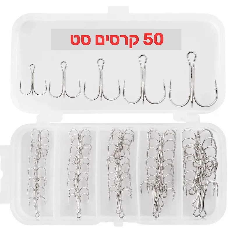 אל תחכו שהדג יברח. הזמינו עכשיו את סט 50 הקרסים המשולשות ושדרגו את ארגז הציוד שלכם ברמה מקצועית!